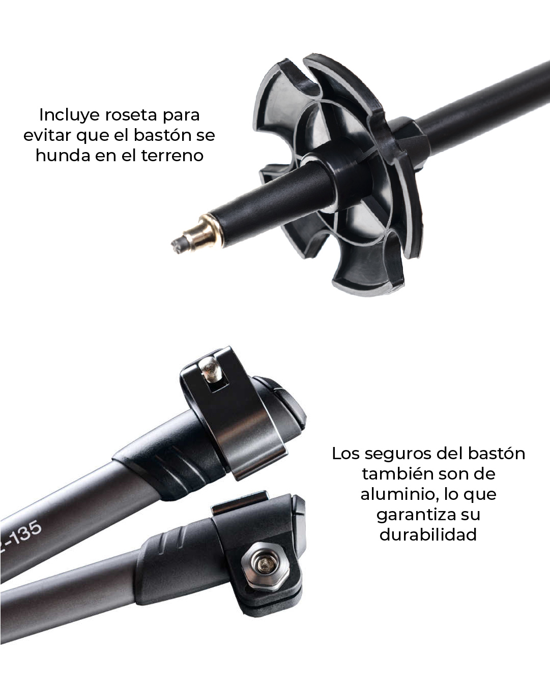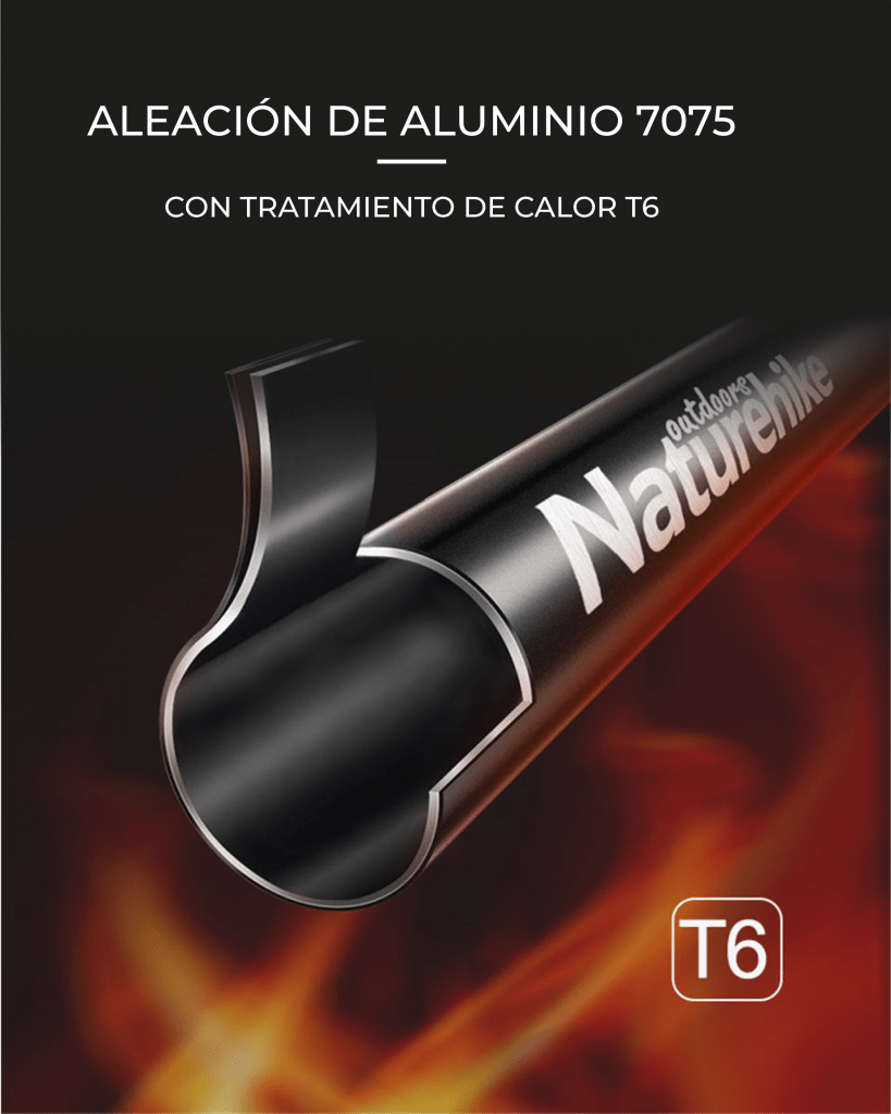 El Bastón de trekking de duraluminio ST03 de Naturehike ha sido elaborado con un tratamiento de calor T6 que mejora su resistencia y capacidad de carga. Además, su empuñadura es de goma para evitar que resbale de tus manos. La principal diferencia con otros bastones son sus seguros de aluminio, esto garantiza una mayor vida útil y resistencia.