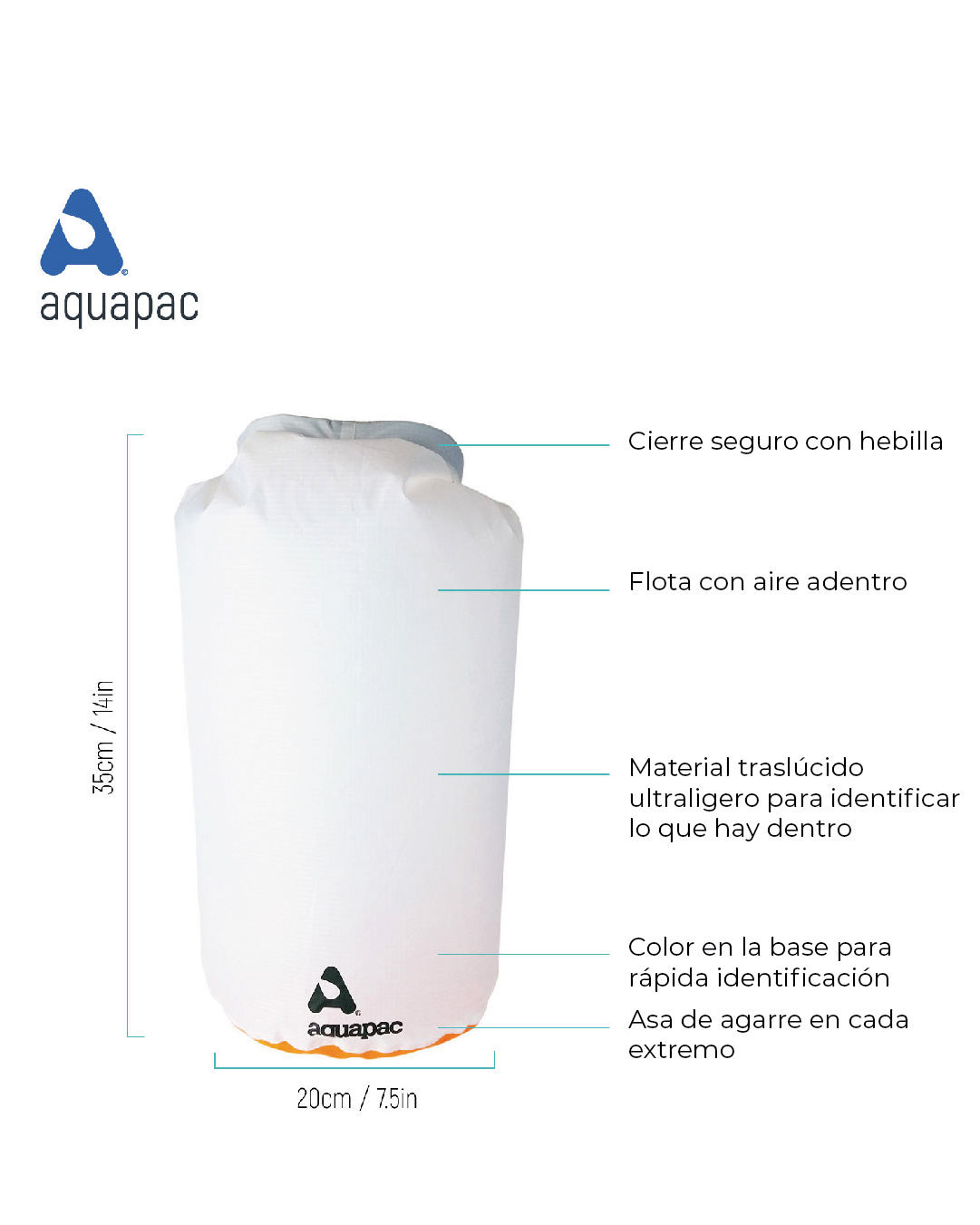 - La Bolsa seca ultraligera 13L Pack Divider de Aquapac está hecha de nylon 75D. El interior tiene un recubrimiento de poliuretano (PU) y el exterior está revestido de silicona.