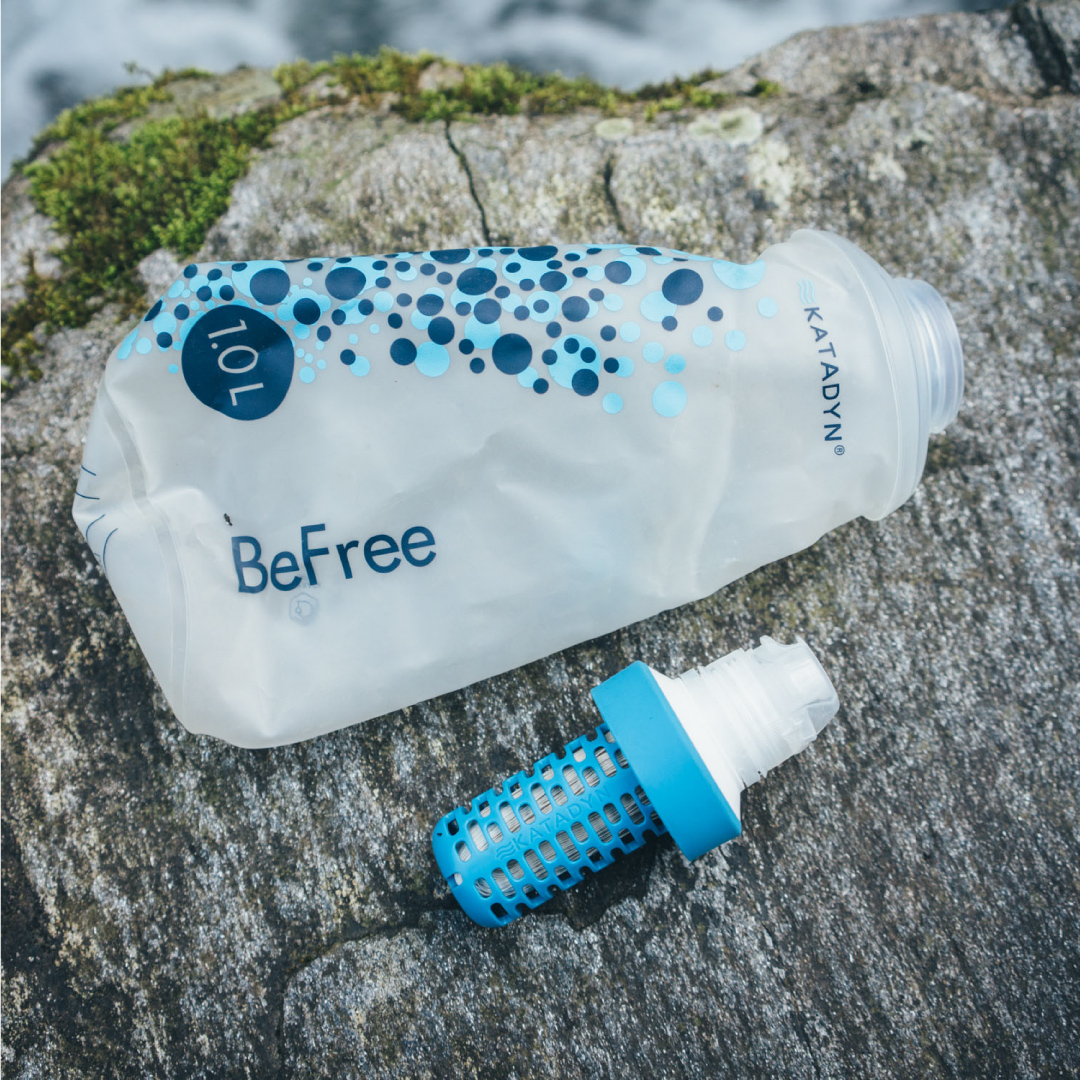 - La botella plegable con filtro Katadyn BeFree es el compañero perfecto para trekkings, campamentos, viajes de mochilero, trail running o pesca.