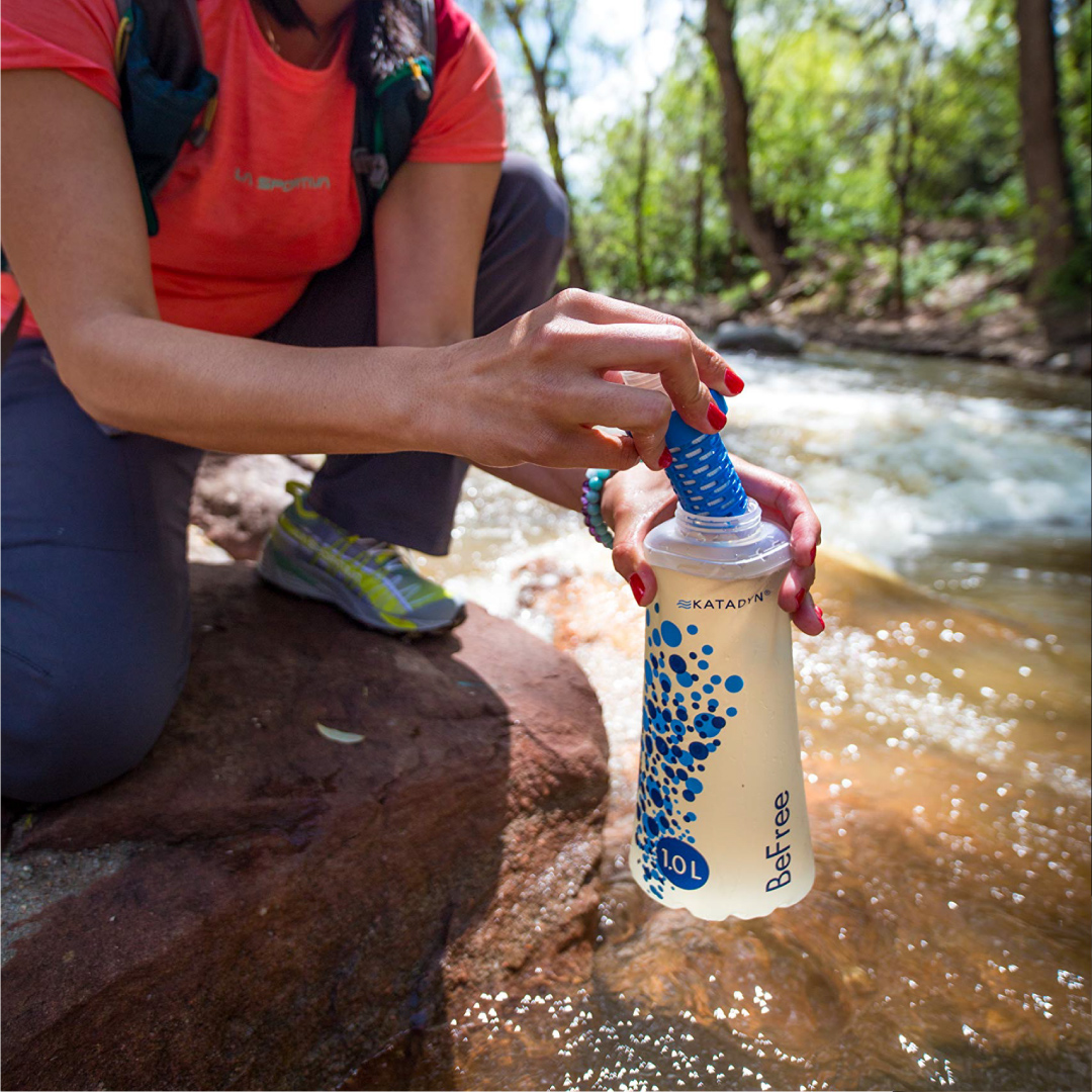 - La botella plegable con filtro de agua Katadyn BeFree 1L cuenta con un microfiltro de fibra hueca de 0.1 micras capaz de eliminar organismos nocivos, eliminando protozoos (99.99%) y bacterias (99.99%) según los estándares de la EPA (Agencia de Protección Ambiental de Estados Unidos).