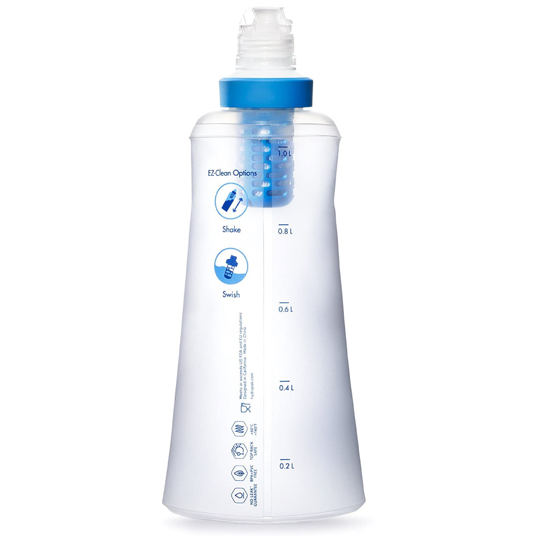 - La botella blanda está diseñada y fabricada por Hydrapak, así que tiene una excelente durabilidad y resistencia. Además, es libre de PVC y BPA.