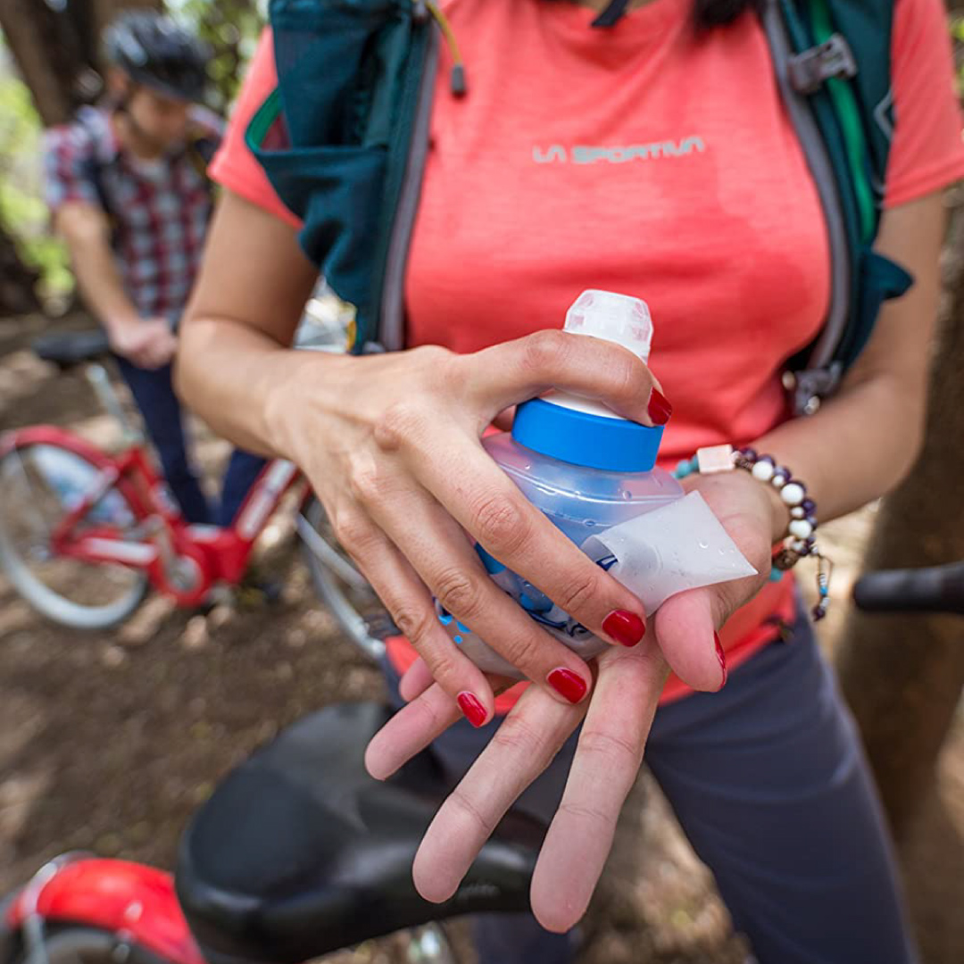 - Se trata de una botella ultraligera y plegable. Cuando está plegada puedes llevarla fácilmente en los bolsillos de tu pantalón o casaca, o también en un canguro.