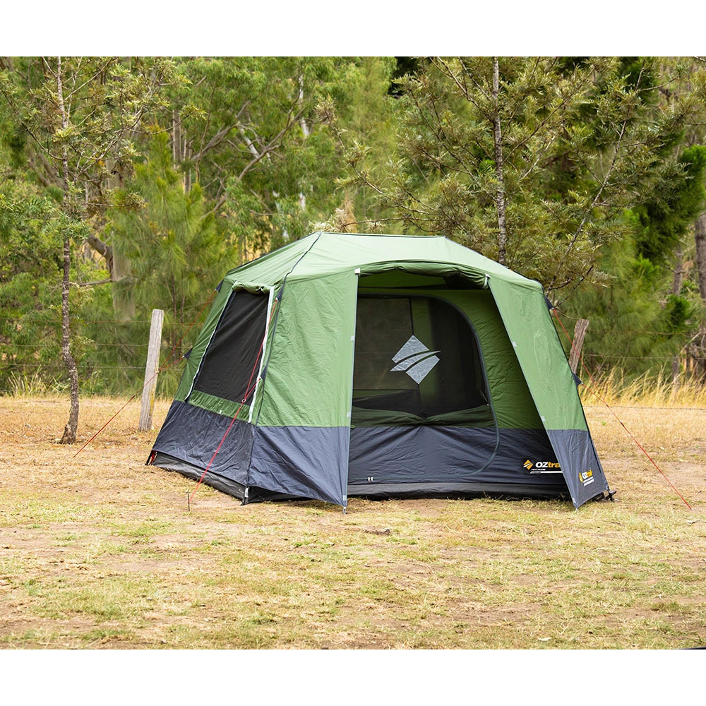 - La Carpa automática para 6 personas Fast Frame 6P de Oztrail tiene un diseño de marco Twin Hub para facilitar el cabeceo, mejorar el espacio interno y aumentar la resistencia.