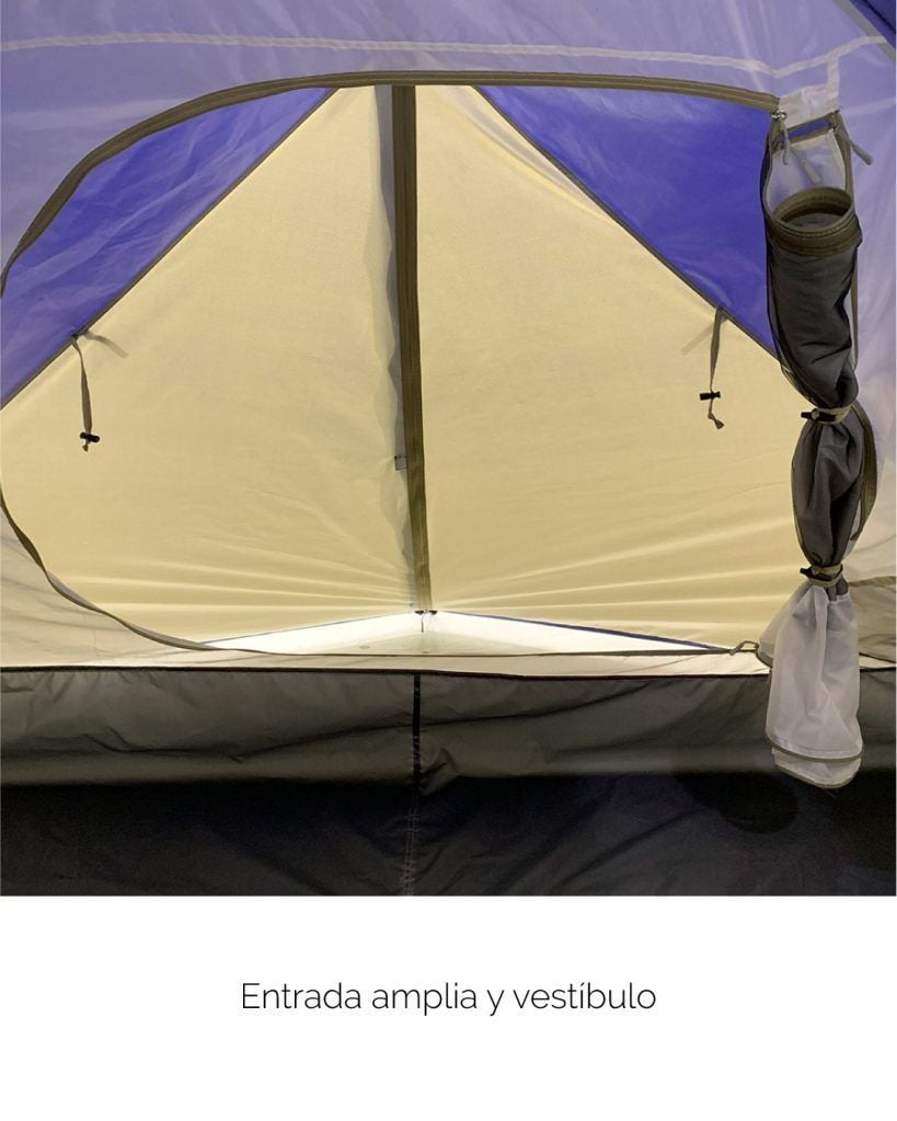 La carpa instantánea Fiordland IV tiene capacidad para cuatro personas y puede armarse en tan solo un minuto. Está hecha de un tejido impermeable, respirable y con protección UV que alcanza un nivel de impermeabilidad de 1500mm. Además, cuenta con un sistema de ventilación 360°.