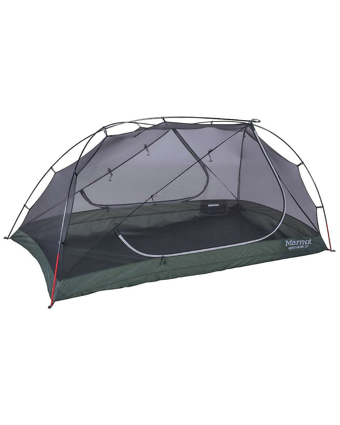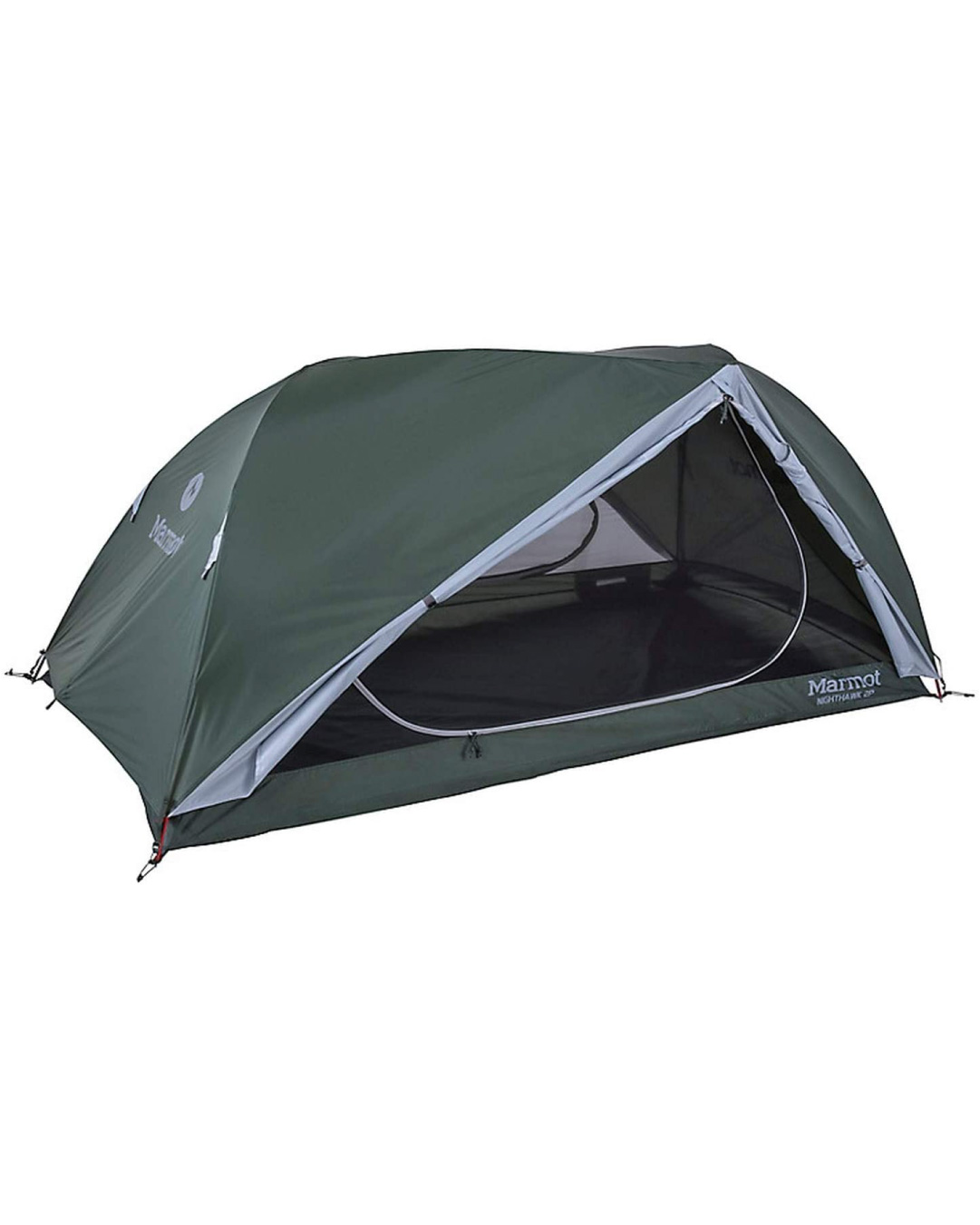 La carpa para 2 personas Nighthawk 2P de Marmot cuenta con una estructura estable gracias a sus varillas entrecruzadas. Esta estructura permite mayor espacio y comodidad. Además, tiene dos puertas y dos vestíbulos para que cada persona tenga un amplio espacio para almacenar y acceder a su equipo fácilmente.
