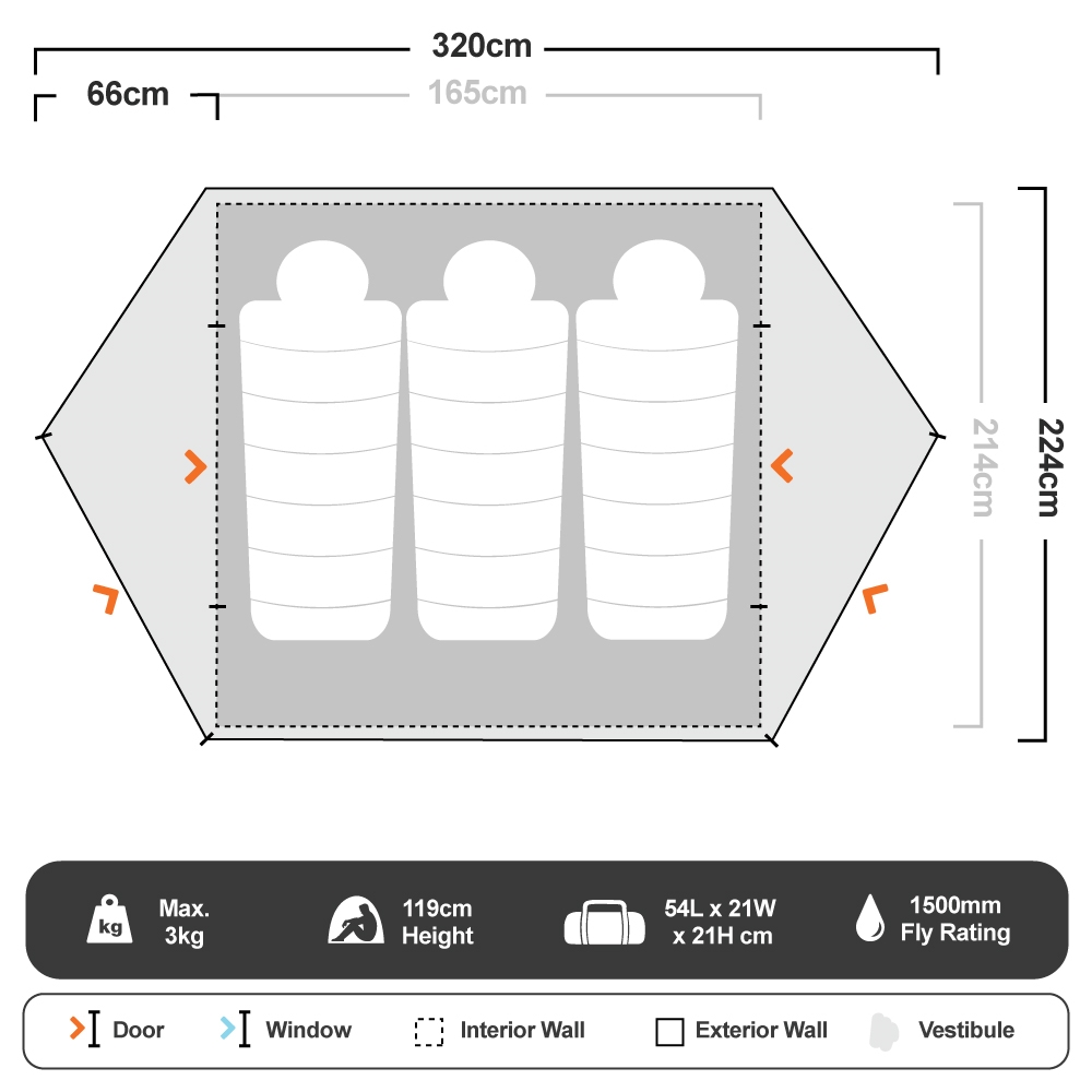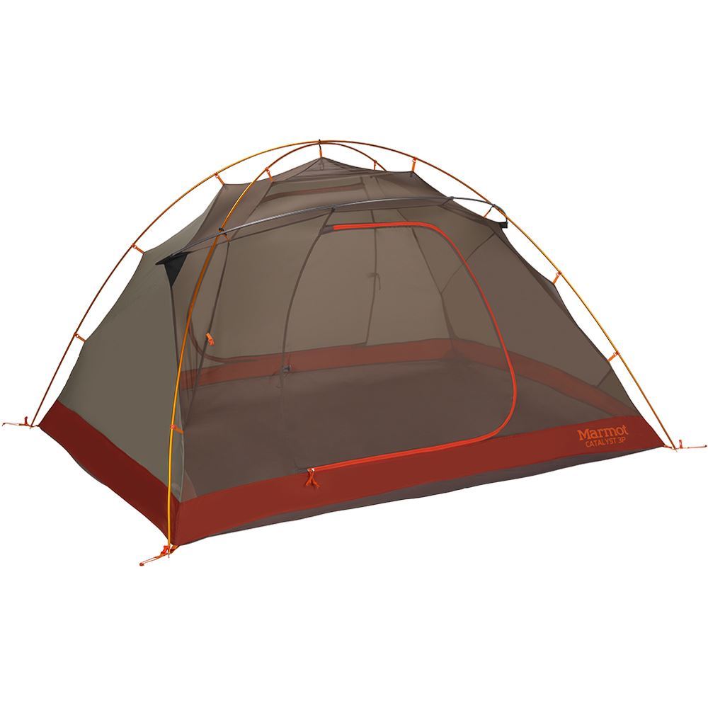 La carpa Catalyst 3P de Marmot ha sido diseñada como una carpa espaciosa y liviana en peso. Es ideal para 3 personas y tiene todas las características para usarla en un viaje de campamento. Tiene costuras selladas, varillas de aluminio, parantes codificados con colores para que puedas armarla fácilmente y dos puertas y vestíbulos amplios. Además, posee espacio suficiente y bolsillos para organizar de mejor forma tu equipamiento.