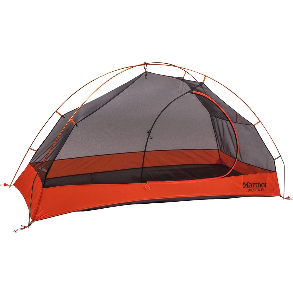 - La carpa unipersonal Tungsten 1P de Marmot tiene una construcción con paredes interiores verticales, lo que brinda una gran área para dormir y espacio adicional para la cabeza del usuario cuando permanece dentro de la carpa.