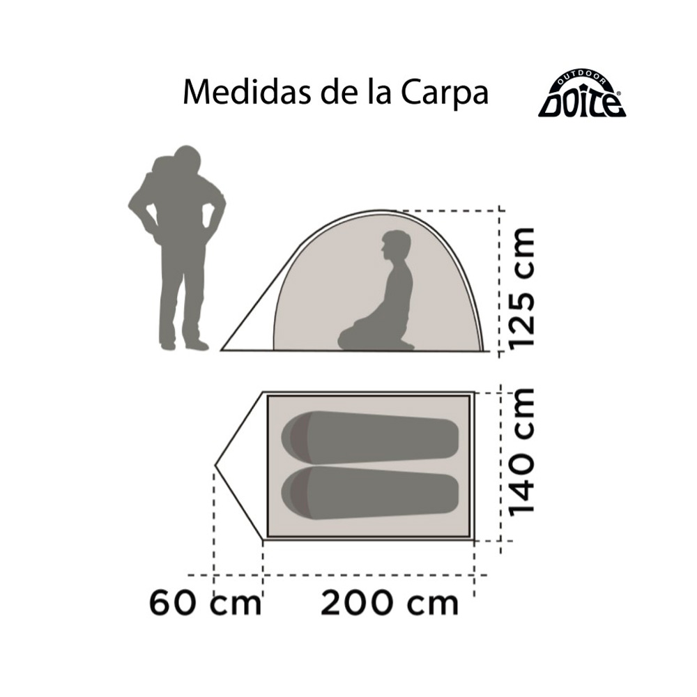 La Carpa Zander XR2 de Doite es una carpa de la línea familiar para 2 personas. Esta carpa de 3 estaciones es de tipo iglú de diseño simple, cuenta con piso impermeable y un vestíbulo.