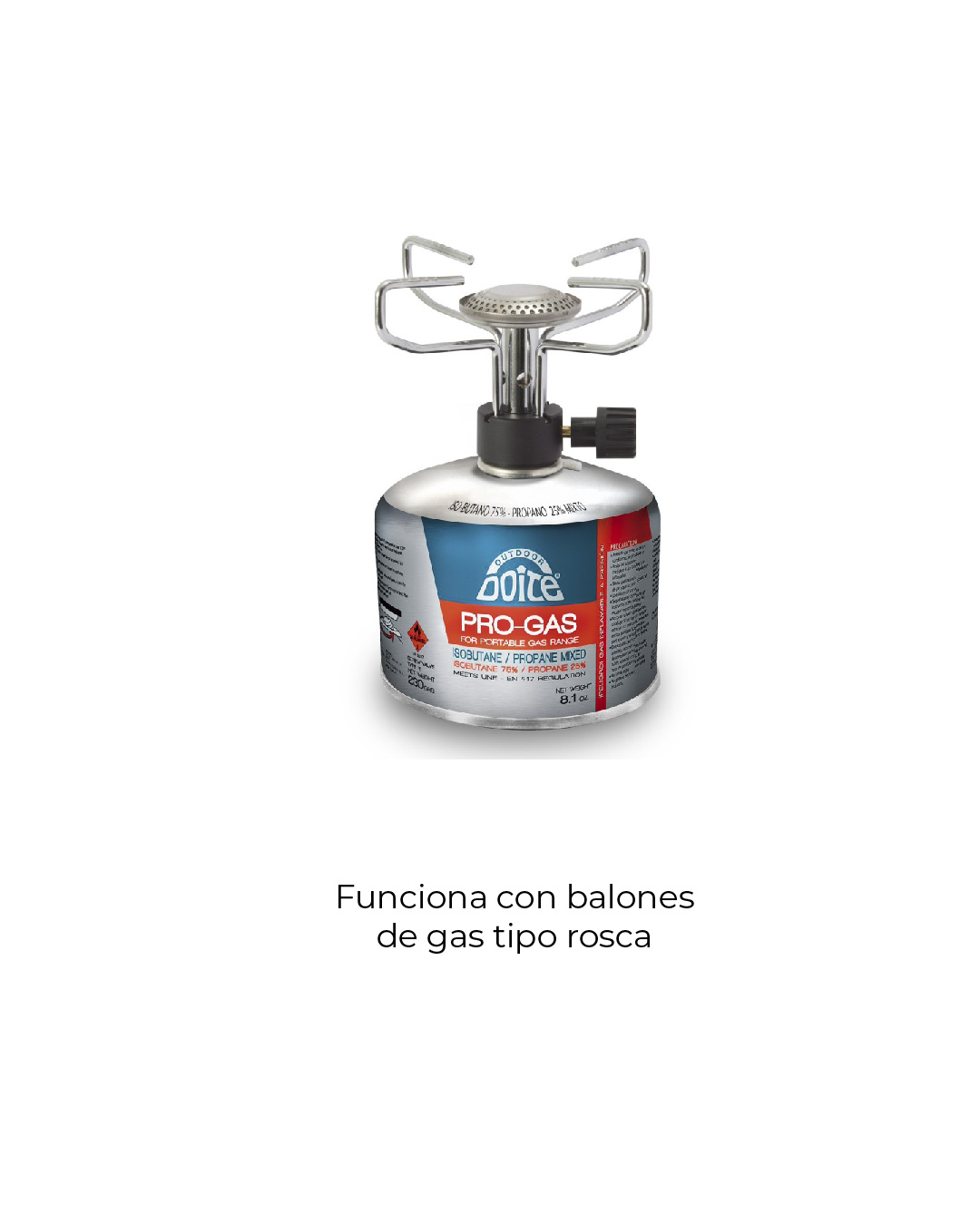 - Es compatible con los balones de gas portátiles con entrada tipo rosca 1.