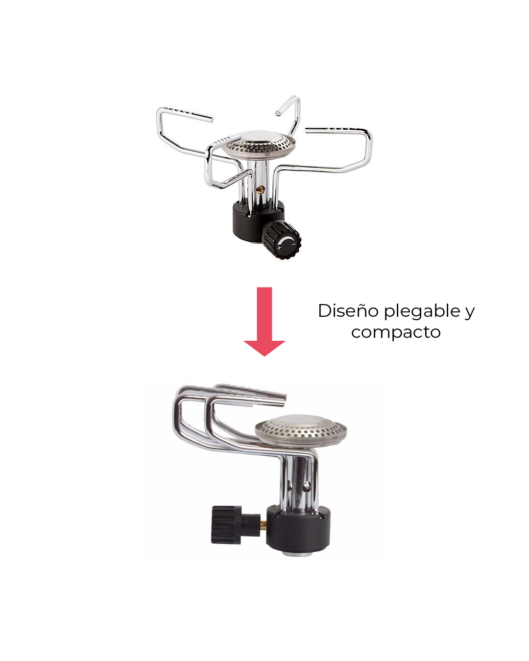 - La cocinilla portátil Spider está hecha de acero inoxidable. Un material resistente y durable.