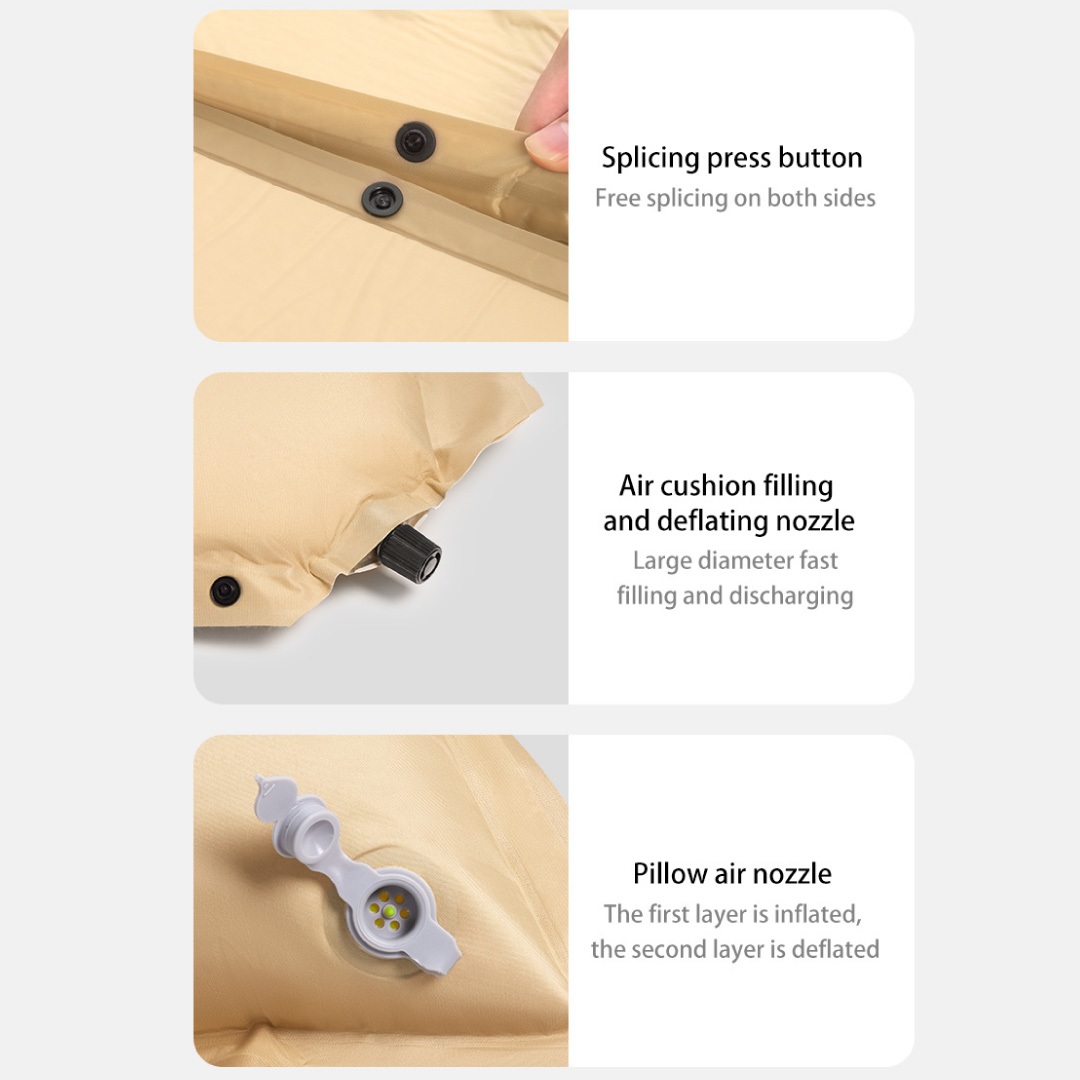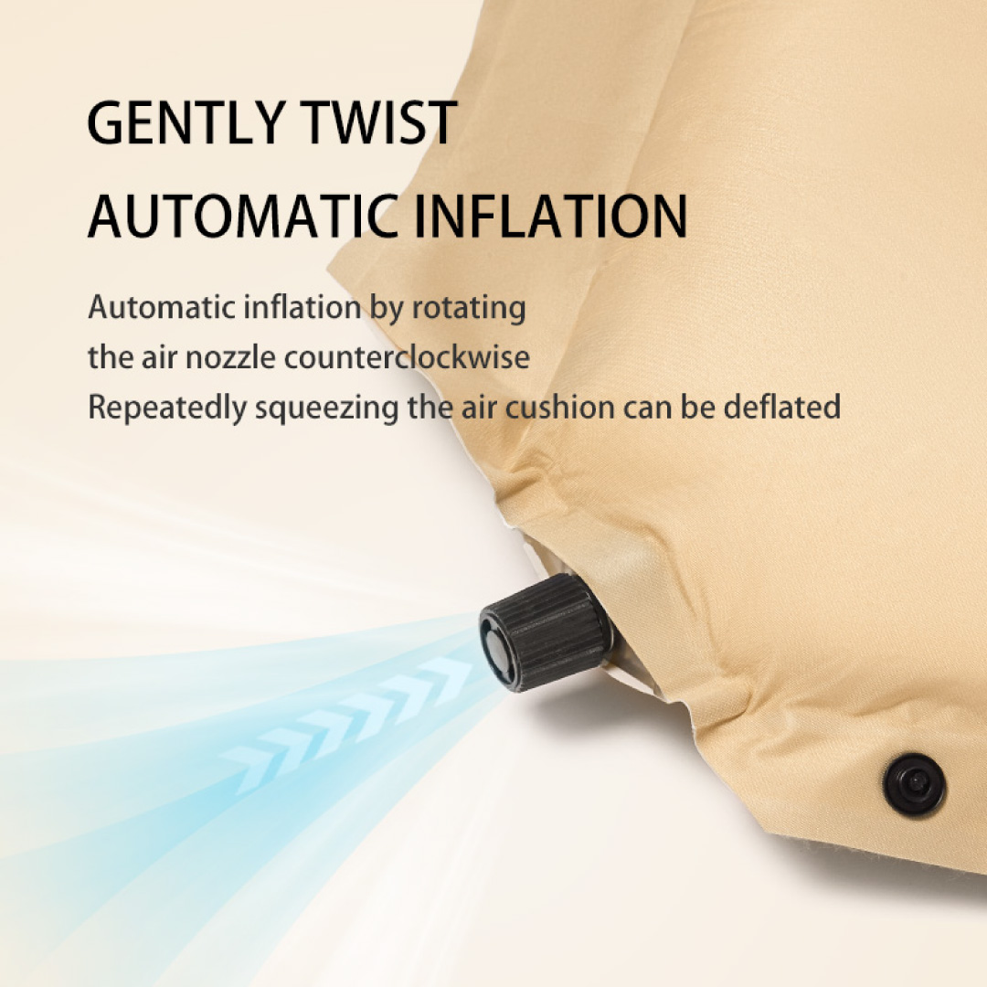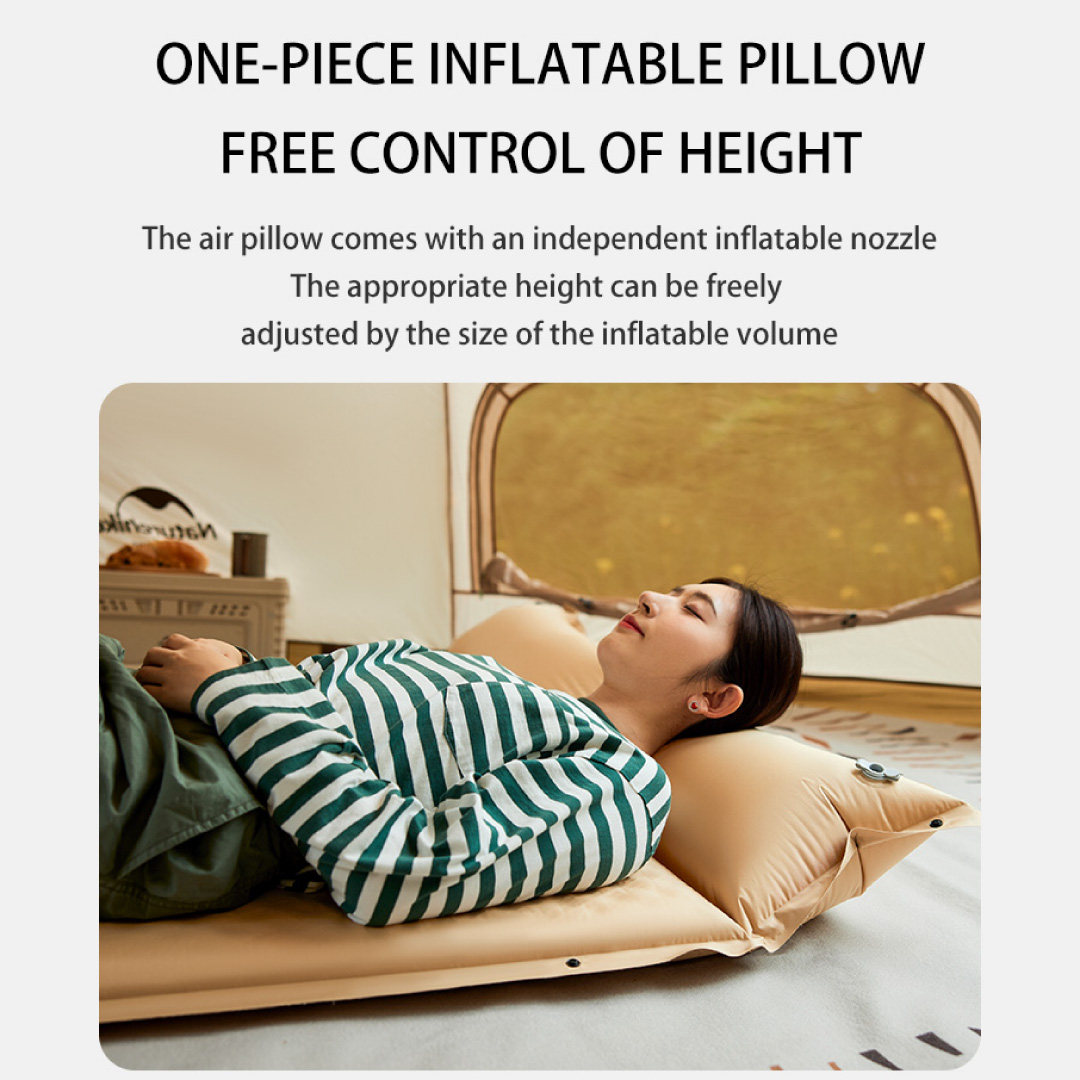- La colchoneta se divide en 2 partes: el cuerpo de esponja autoinflable y las almohadas. Las almohadas cuentan con inflado manual para que puedas regular su altura.