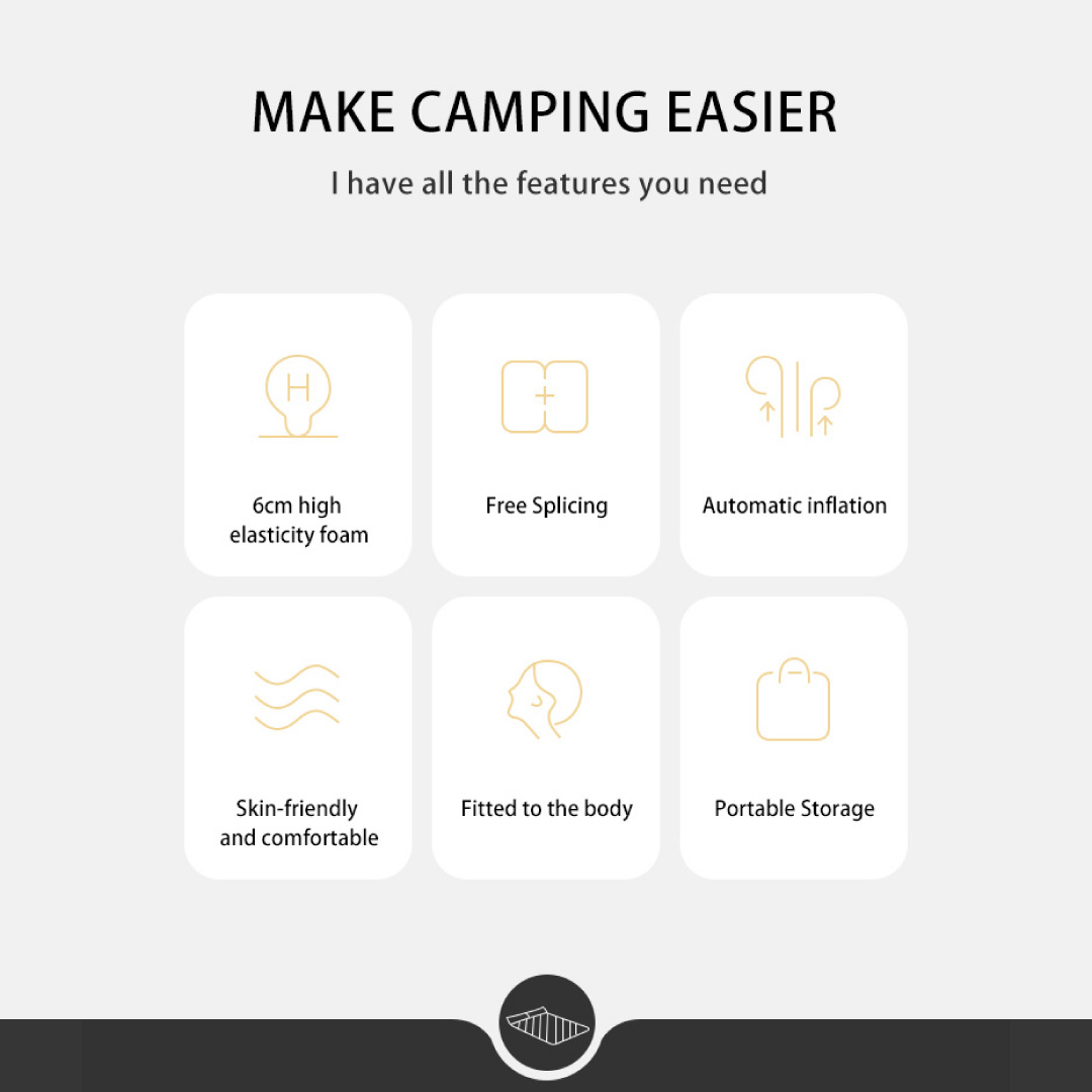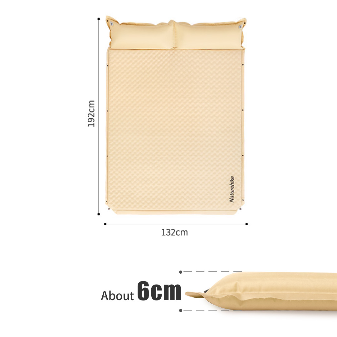 La colchoneta autoinflable doble con almohadas D01 de Naturehike es ideal para campamentos en pareja. Tiene un grosor de 6cm para un máximo confort en tus noches de camping. Además, con sus broches laterales puede unirse con otras colchonetas D01 dobles o simples si acampas con más personas.