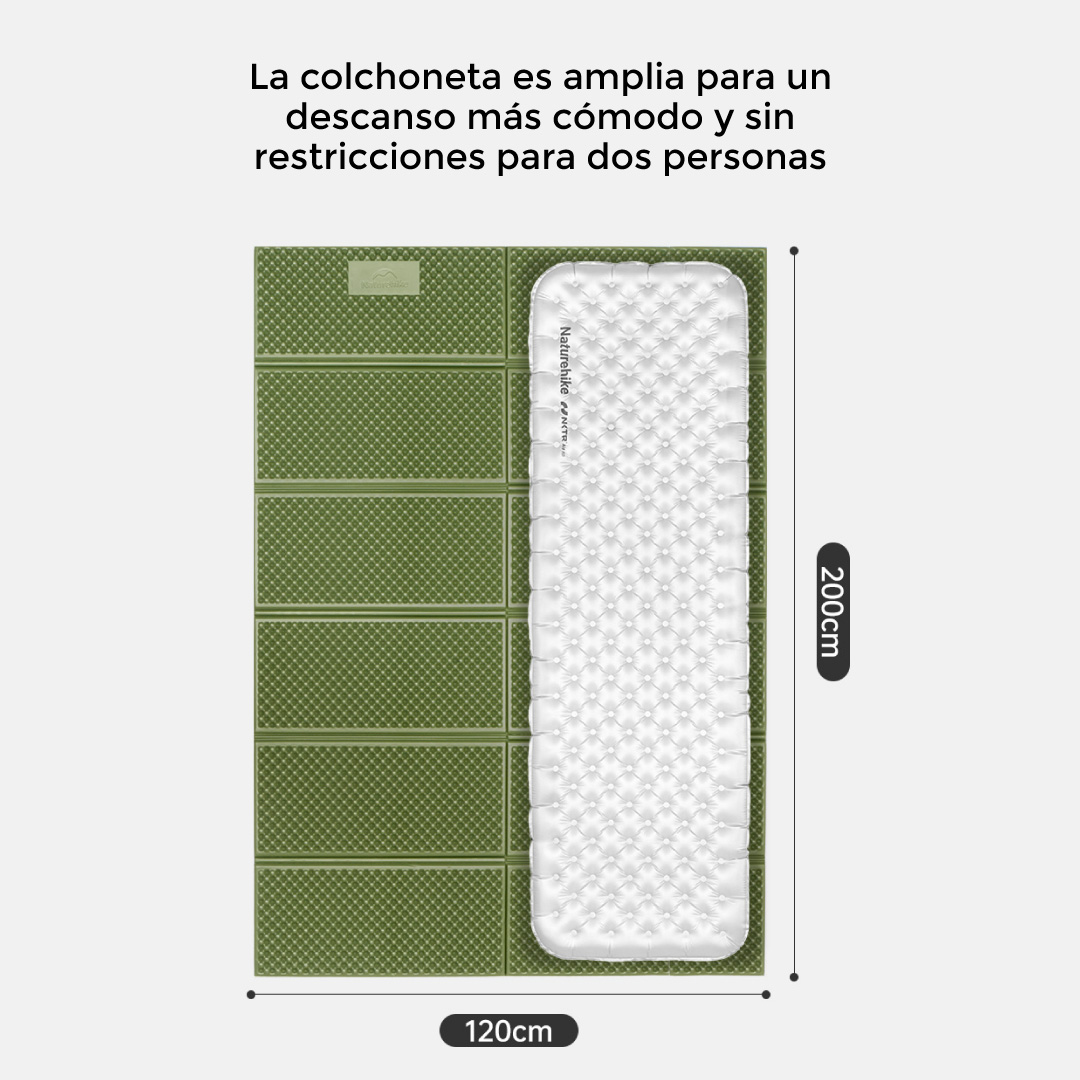 La colchoneta de espuma aluminizada doble Troues de Naturehike es una opción ligera y resistente para parejas que busquen una colchoneta en la que puedan dormir cómodamente dos personas. Gracias a su revestimiento de aluminio, bloquea la humedad y el frío del suelo, asegurando un descanso más cómodo.