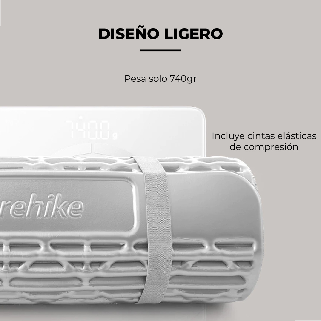 - La colchoneta de espuma plegable aluminizada X-Large de Naturehike está elaborada con espuma IXPE y una lámina de aluminio. La espuma IXPE es un material ligero a prueba de agua que permite preservar el calor. Junto con la película de aluminio, generan un aislamiento térmico y una mejor resistencia al desgaste.