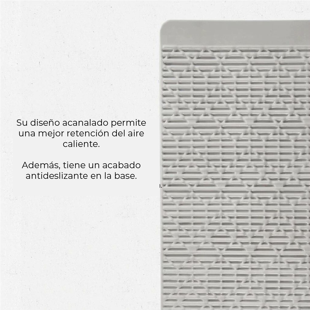 - Su diseño acanalado con ranuras ayuda a retener mejor el aire caliente, pero también permite una buena transpirabilidad.