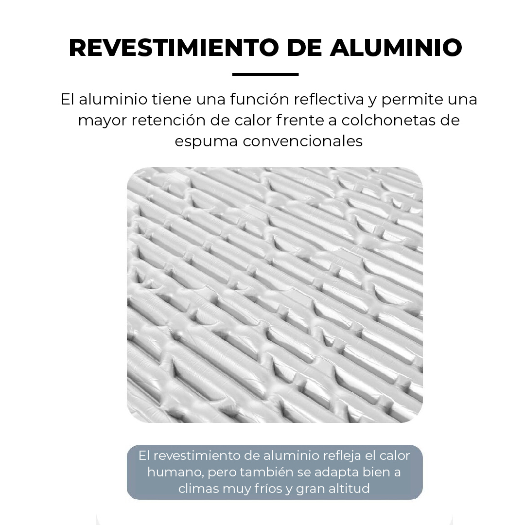 - La cara aluminizada va en contacto con el cuerpo para reflejar el calor y mantener un mayor nivel de aislamiento.