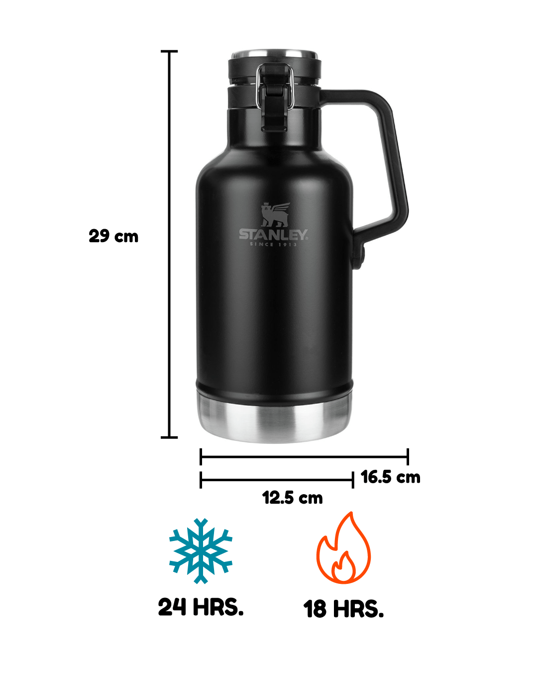 - El Growler Stanley 64 Oz está hecho de acero inoxidable 18/8; libre de BPA.
