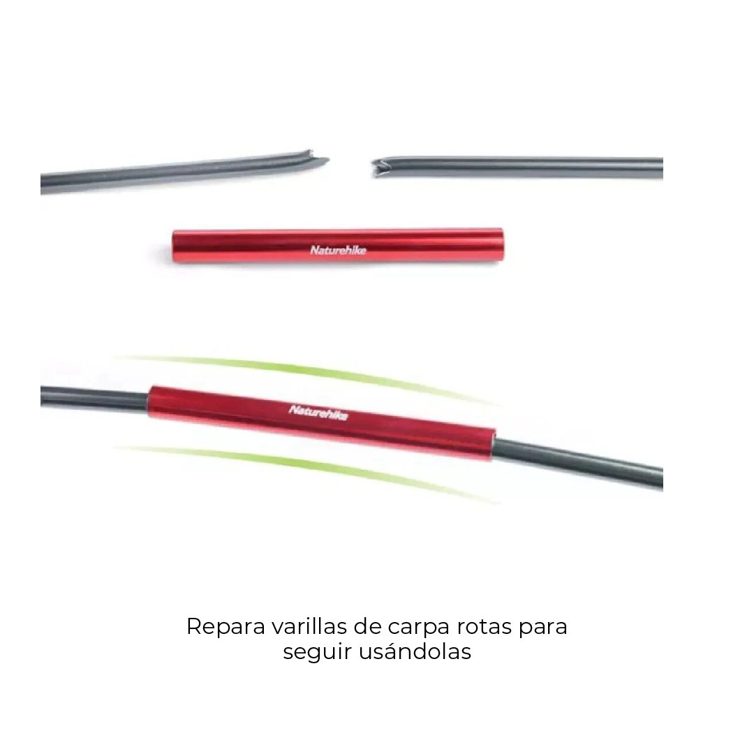 - El Kit de reparación para varillas de carpa (x4) de Naturehike consta de 04 tubos de emergencia para reparar las varillas de las carpas.