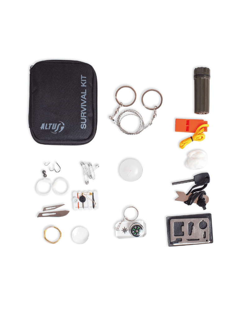 El kit de supervivencia Altus contiene 14 accesorios para situaciones extremas. Este kit de supervivencia te será de gran utilidad en los momentos más inesperados durante tus excursiones o salidas a la montaña. También será muy útil en campamentos.