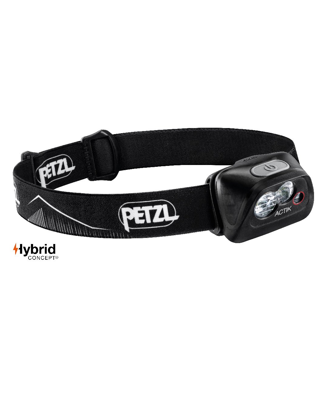 - La Linterna frontal outdoor Actik de Petzl tiene una construcción HYBRID CONCEPT, es decir, funciona con tres pilas y también es compatible con la batería CORE (disponible como accesorio).