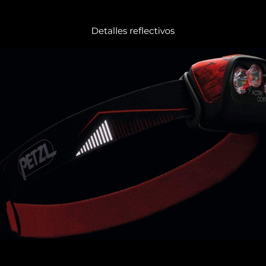 - La linterna frontal recargable Actik Core de Petzl tiene dos tipos de haces luminosos (amplio o mixto) y varios niveles de iluminación blanca para una iluminación de proximidad confortable, los desplazamientos rápidos y la visión de lejos.