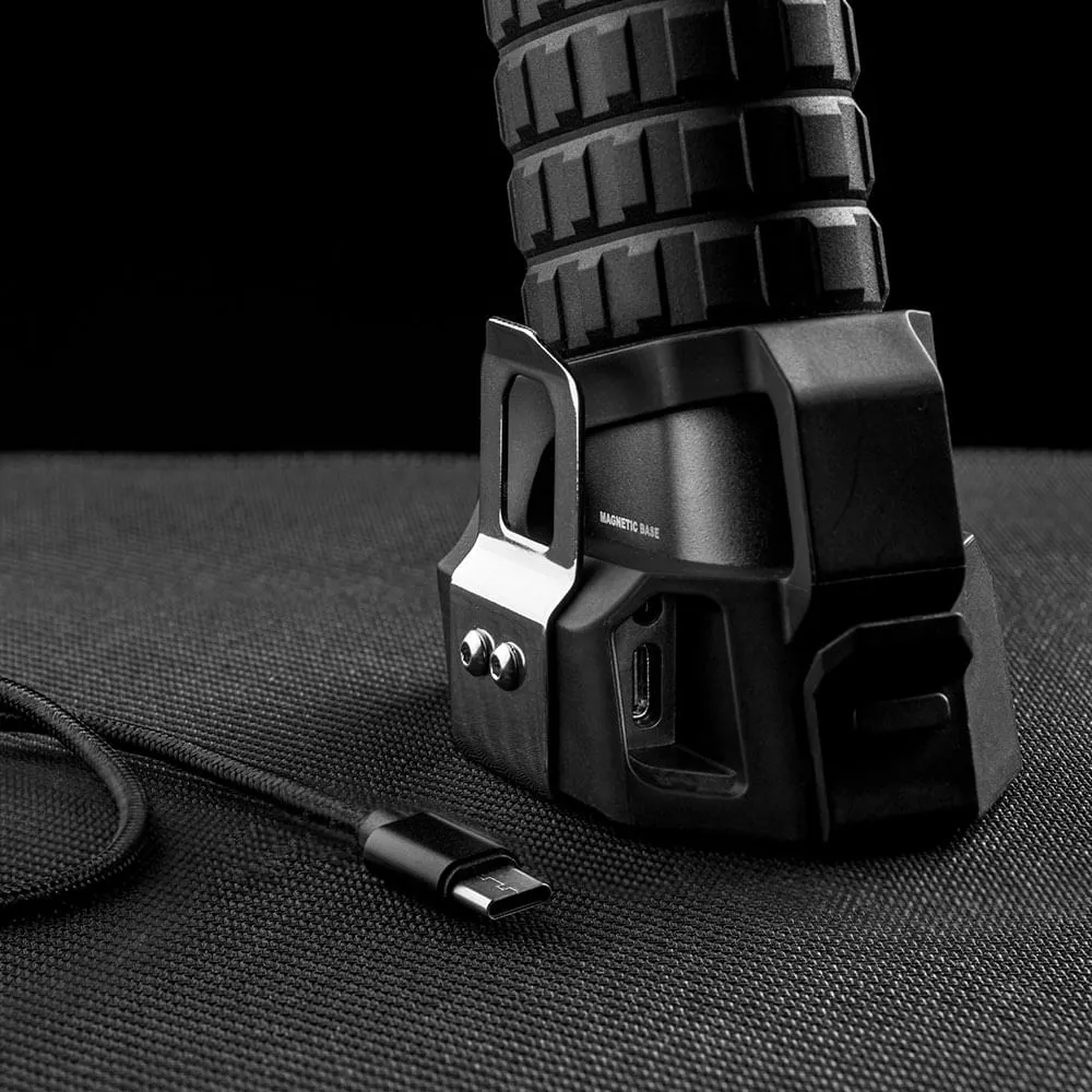 - El cuerpo de la luz presenta una construcción duradera de caucho y aluminio aeronáutico PA66. Esto permite que sea resistente a impactos de hasta un metro.