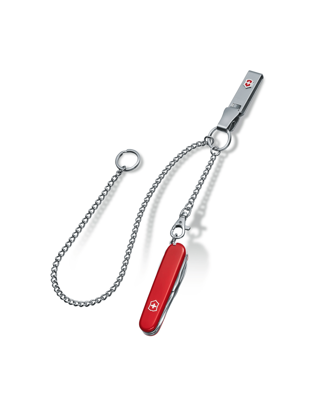 Sujeta tu navaja Victorinox gracias al llavero Multiclip. Este llavero para cinturón está diseñado para mantener tu Victorinox sujeta de manera segura contigo. De manera que, aunque se salga de tu bolsillo, no la perderás. Y cuando la necesites, sólo tiene que soltar el mosquetón y comenzar a trabajar. Simple, fácil y seguro.