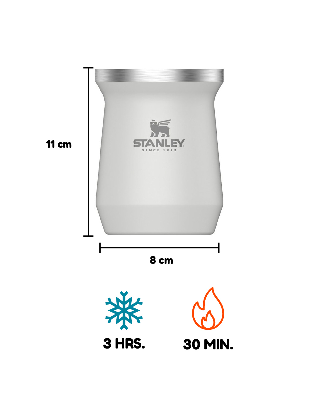 Para los amantes del mate, el Matero Stanley Classic 236ml mantiene la temperatura ideal de tu mate mientras lo disfrutas. Es práctico e higiénico, ya que no transfiere ningún aroma ni sabor a tu mate.  Mantiene tus líquidos calientes durante 30 min y fríos durante 3 horas.