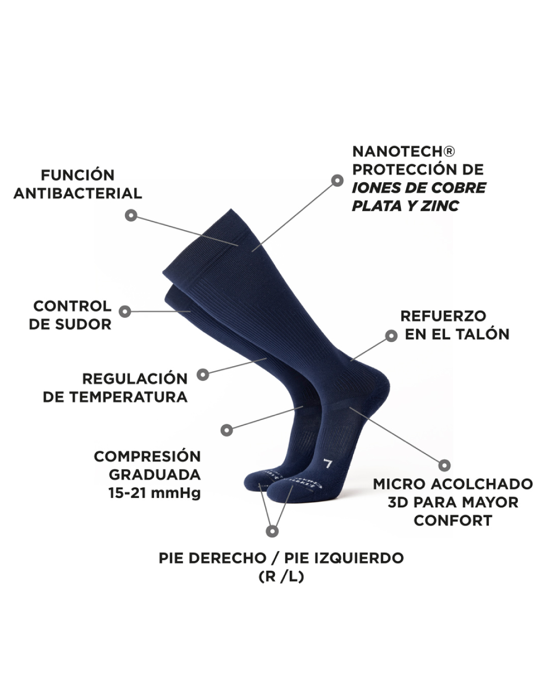 - Las medias de compresión Atlas Pro han sido diseñadas con la tecnología Silvera Nanotech® con nanopartículas de Cobre, Plata y Zinc que atacan directamente a los organismos causantes de malos olores y previenen enfermedades como el pie de atleta.