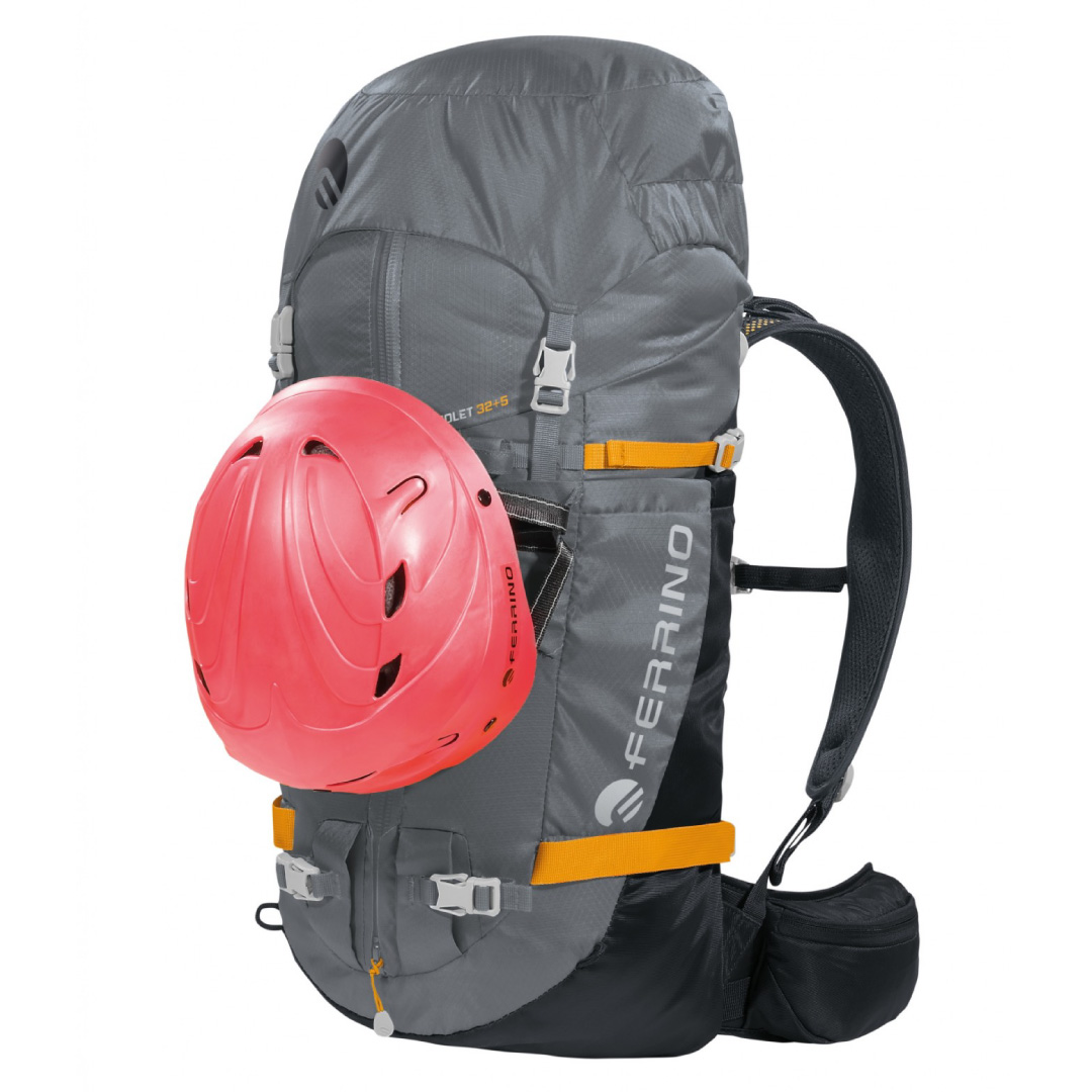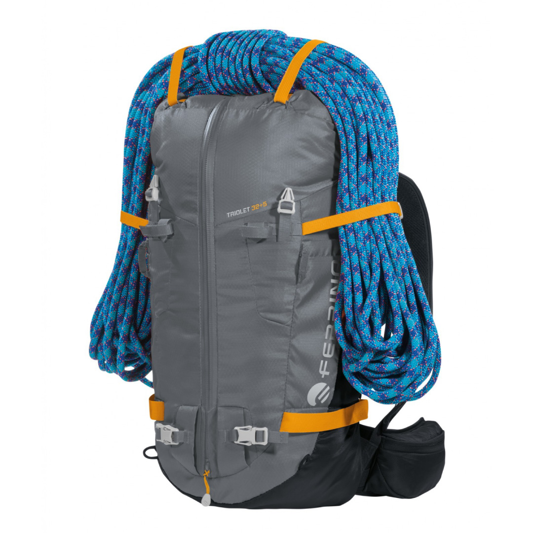 - La mochila Triolet 32+5 de Ferrino cuenta con accesorios amovibles que puedes retirar para adecuar la mochila según la actividad que desees realizar: Capucha amovible, panel rígido de la espalda amovible, cinturón amovible y dos portapiolets con anillas amovibles en la parte superior. Cuenta también con portaesquís lateral, anillas portacasco y anillas portacuerdas superiores (con correas adicionales).