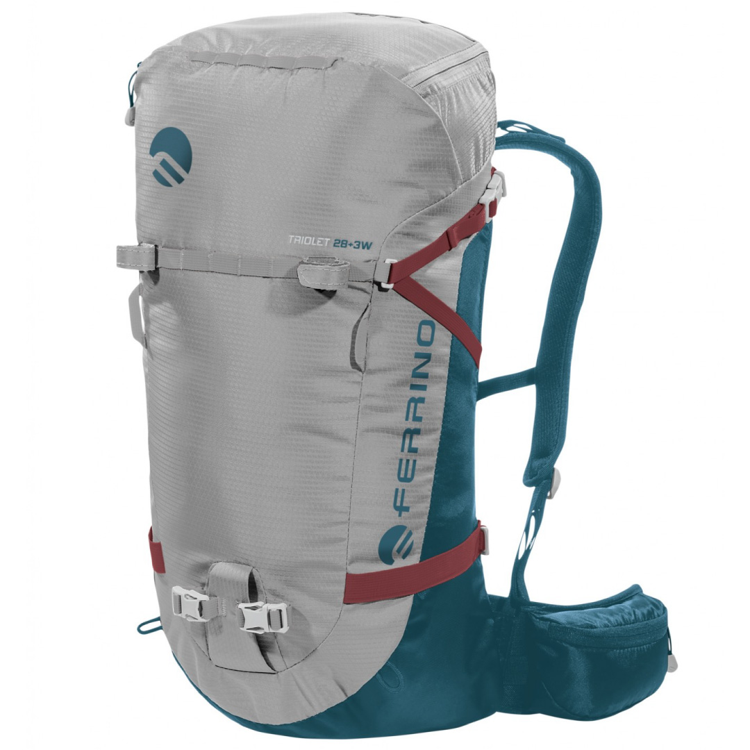 - La mochila Triolet Lady 28+3 de Ferrino cuenta con accesorios amovibles que puedes retirar para adecuar la mochila según la actividad que desees realizar: Cinturón amovible, anillas superiores portacuerdas amovibles, correas adicionales delanteras amovibles portamaterial y dos portapiolets con anillas amovibles en la parte superior. Cuenta también con portaesquís lateral, anillas portacasco y daisy chain frontal y superior.