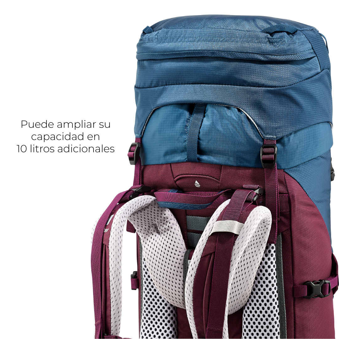 - Esta modelo tiene la versión SL para mujeres. La longitud de la espalda SL está adecuado para el fisio tipo femenino, puesto que las mujeres tienen espaldas más cortas que los hombres. El sistema de transporte en el modelo SL es, por tanto, algo más corto que en las mochilas estándar Deuter. Además, el sistema de transporte está especialmente adaptado a la anatomía femenina.