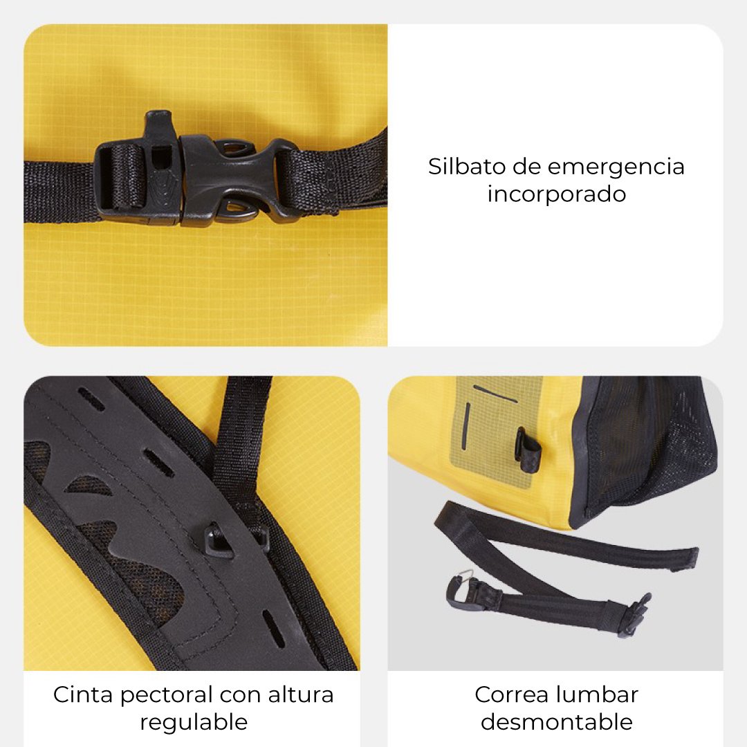 La mochila impermeable Far Mountain 25L de Naturehike es ideal para deportes acuáticos y viajes en zonas tropicales o lluviosas. Tiene un nivel de impermeabilidad de IPX6 y ha sido fabricada con un tejido altamente resistente y liviano. Cuenta con correas de pecho y cintura para darte mayor estabilidad y comodidad.