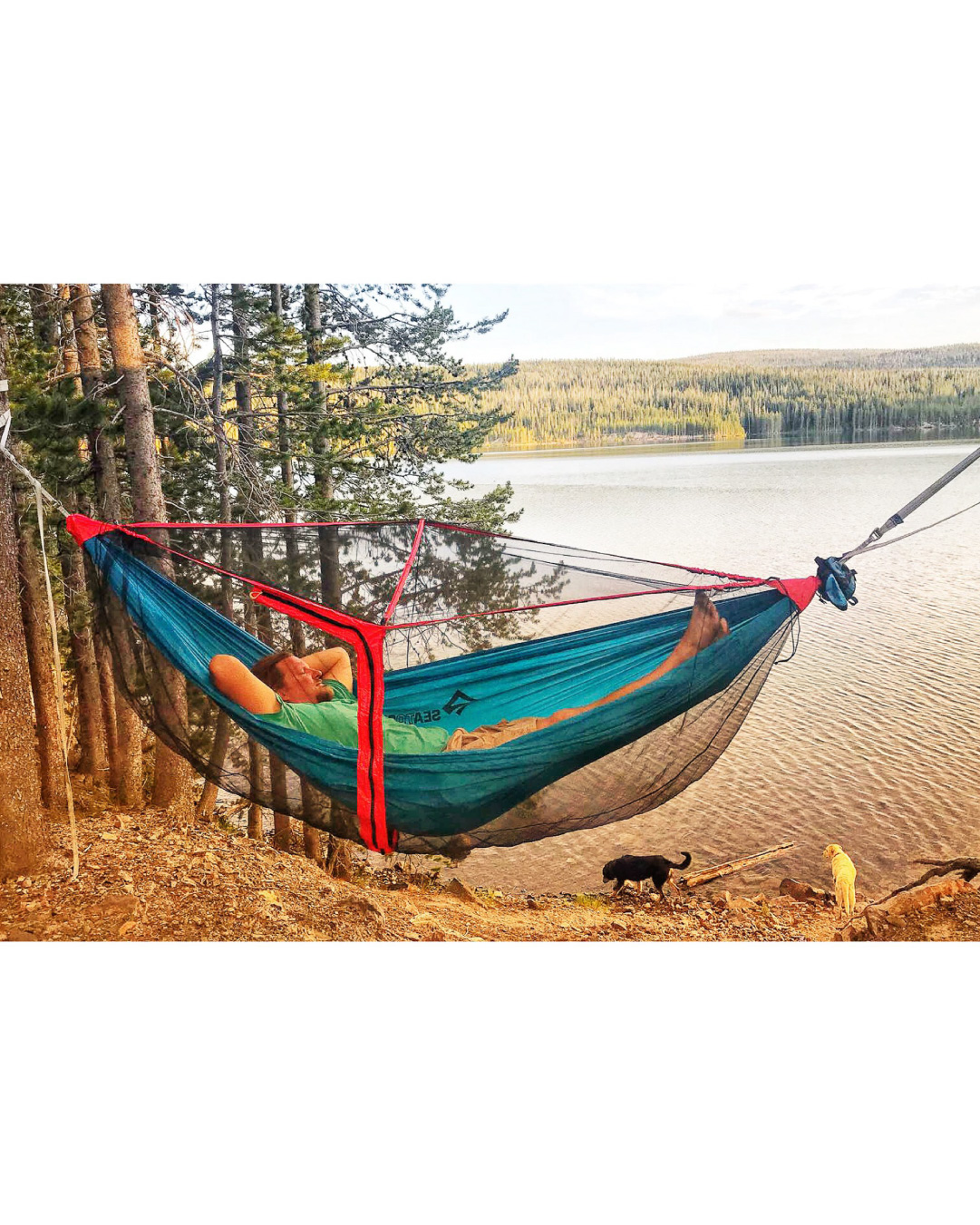 El mosquitero para hamaca de Sea to Summit ofrece una protección garantizada contra mosquitos gracias al tejido de 500 agujeros por pulgada. Esto también permite que haya un buen flujo de aire. Puede utilizarse en la playa, selva o incluso en la montaña y su diseño es compatible con prácticamente cualquier hamaca personal.