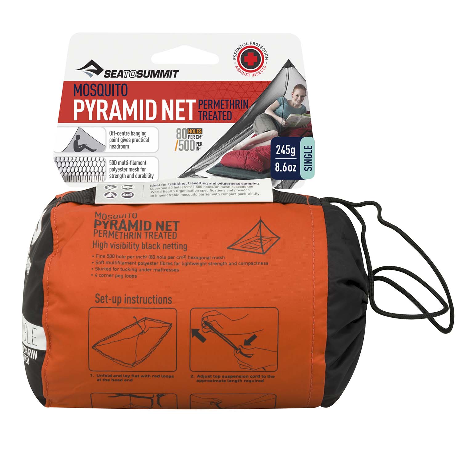 El Mosquitero piramidal personal de Sea to Summit es ideal para la protección de los mosquitos sobre una cama, cuna o colchoneta. Tiene una solapa en la base que hace más fácil lograr un sello a prueba de insectos contra el piso o colchón. Además, tiene 500 agujeros por pulgada, lo que garantiza un buen flujo de aire.
