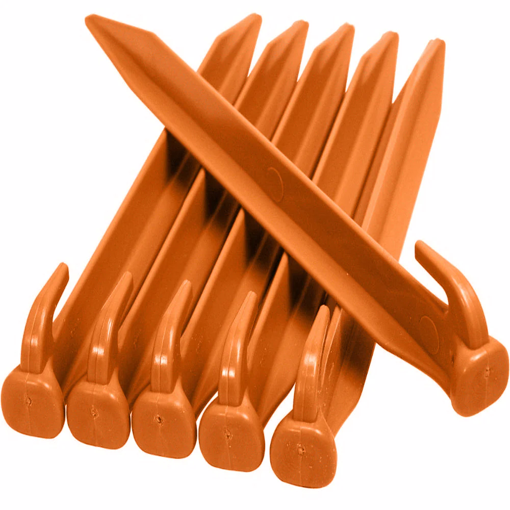 - El Set de estacas de plástico de World Famous están hechas de plástico de alto impacto para evitar la oxidación que se suele producir en las estacas metálicas.