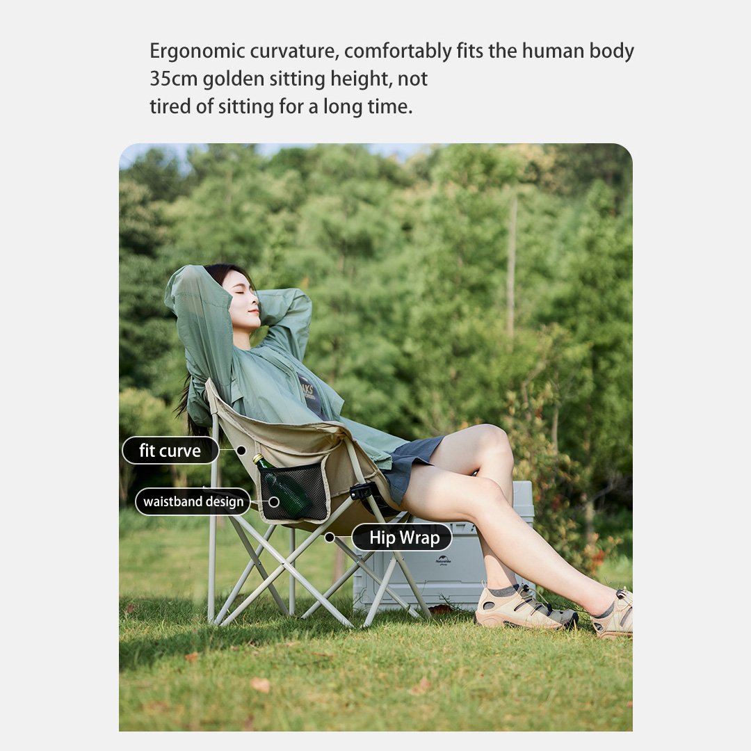 - La silla plegable con apoya brazos X-Comfy de Naturehike es una silla versátil y cómoda para campamentos al aire libre.