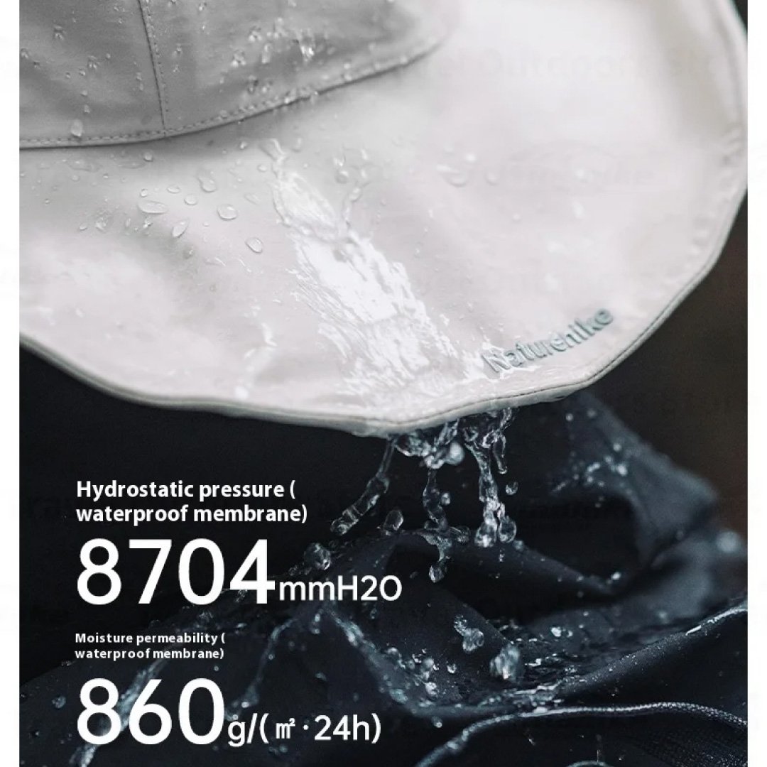 - El sombrero impermeable con protección UV Fisherman de Naturehike tiene una construcción en un tejido de 3 capas con membrana impermeable con un nivel de impermeabilidad de 8704mm. Además, sus costuras son selladas para evitar filtraciones.