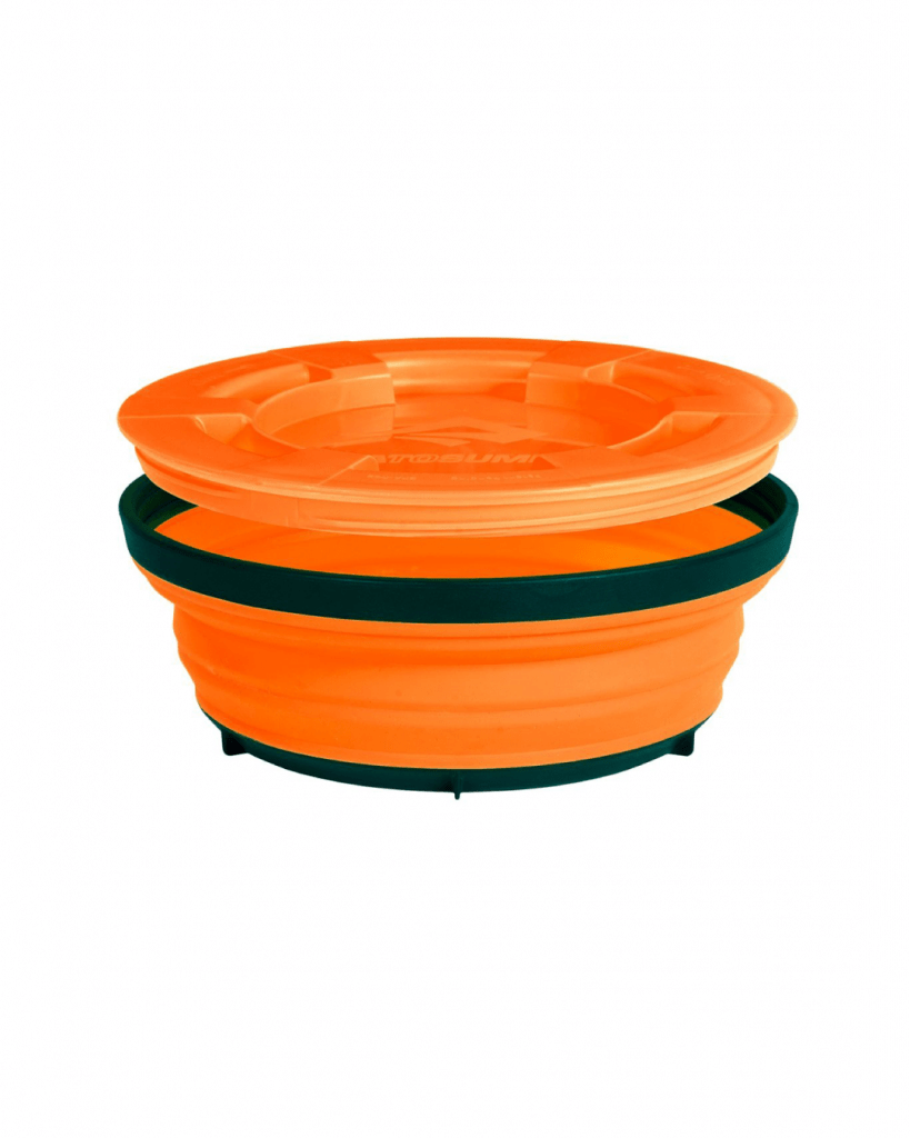 El recipiente XSEAL & GO está diseñado para ser aprueba de fugas gracias a su tapa roscada. Cuando no está lleno, se puede plegar para ocupar un mínimo espacio en tu mochila. Está hecho con silicona de calidad alimentaria y es apto para microondas.